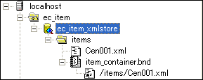 新規に作成したXML(items/Cen001.xml)とバインダドキュメント(item_container.bnd)とバインダドキュメント上に作成されたリンクが確認できます。